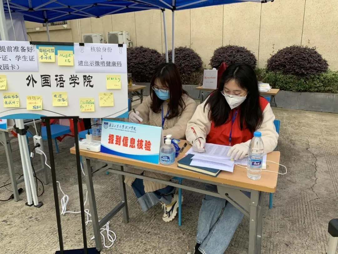 根据江苏省发布的全省学校开学通知,经学校研究,报省新冠肺炎疫情防控工作领导小组学校防控组备案,我校于4月19日~22日(4天时间)开展了学生分批错峰返校报到工作。根据学校统筹安排,位于江宁校区的外国语学院四个年级共200余名学生于4月21-22日全部安全返校。