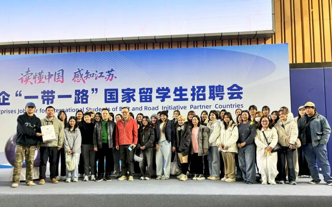 当日下午两点,全体师生转场至无锡学院,参加了盛大的“读懂中国、感知江苏”2025江苏侨企“一带一路”国家留学生招聘会。现场气氛热烈,来自众多知名侨企与中资机构的招聘位前人头攒动。